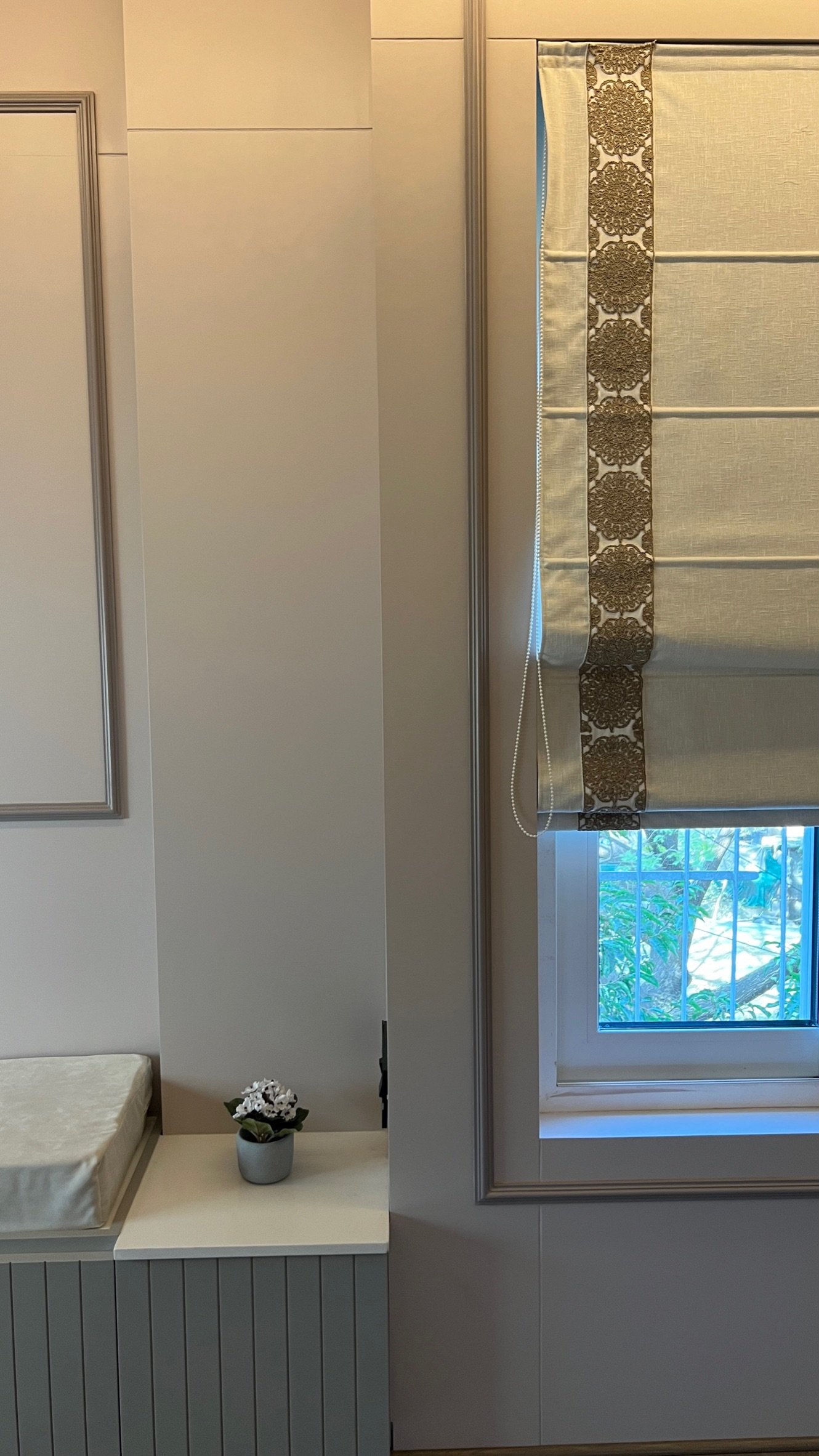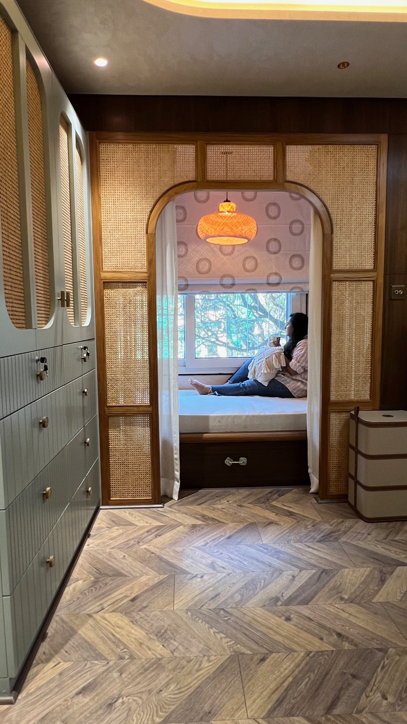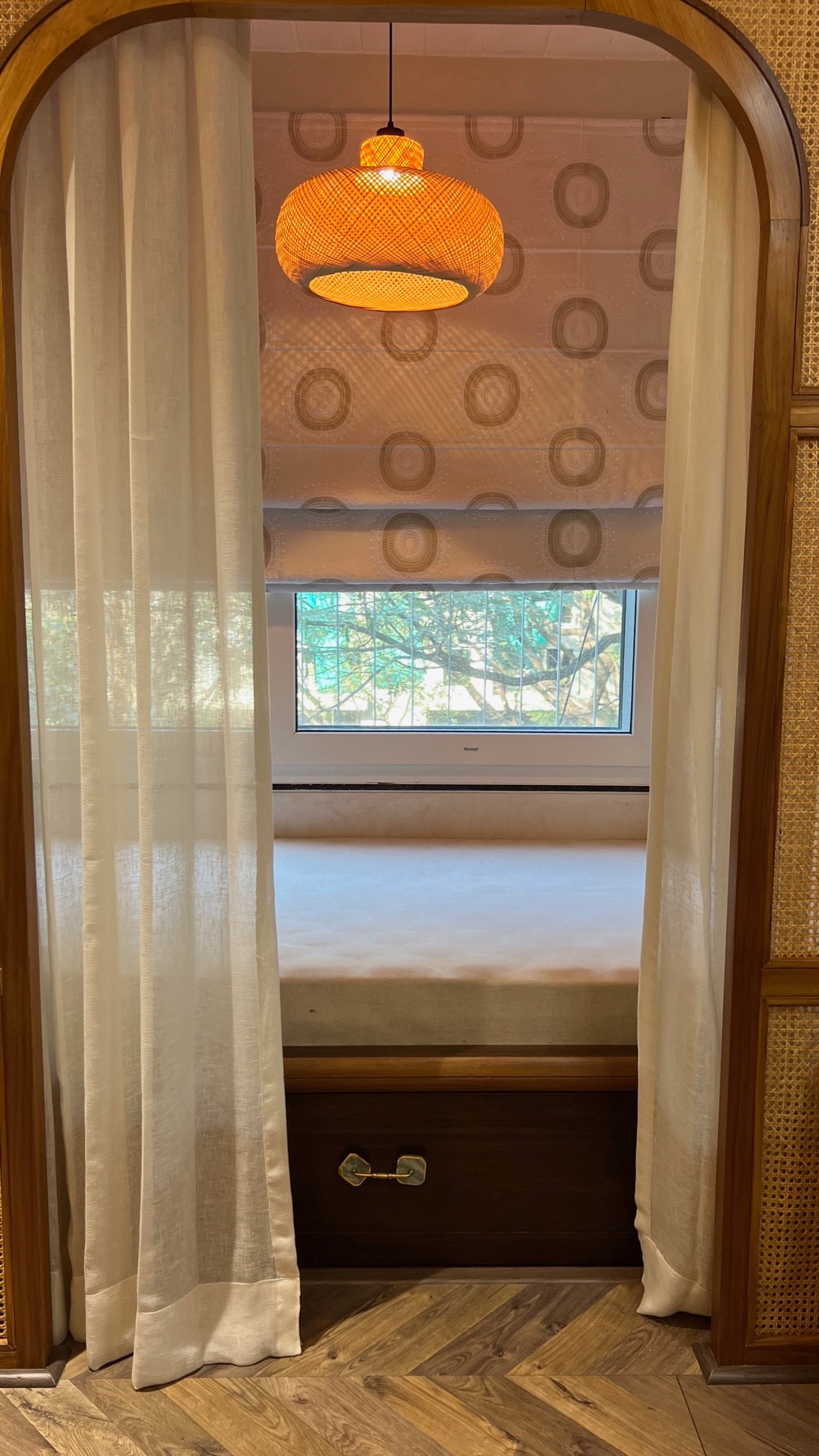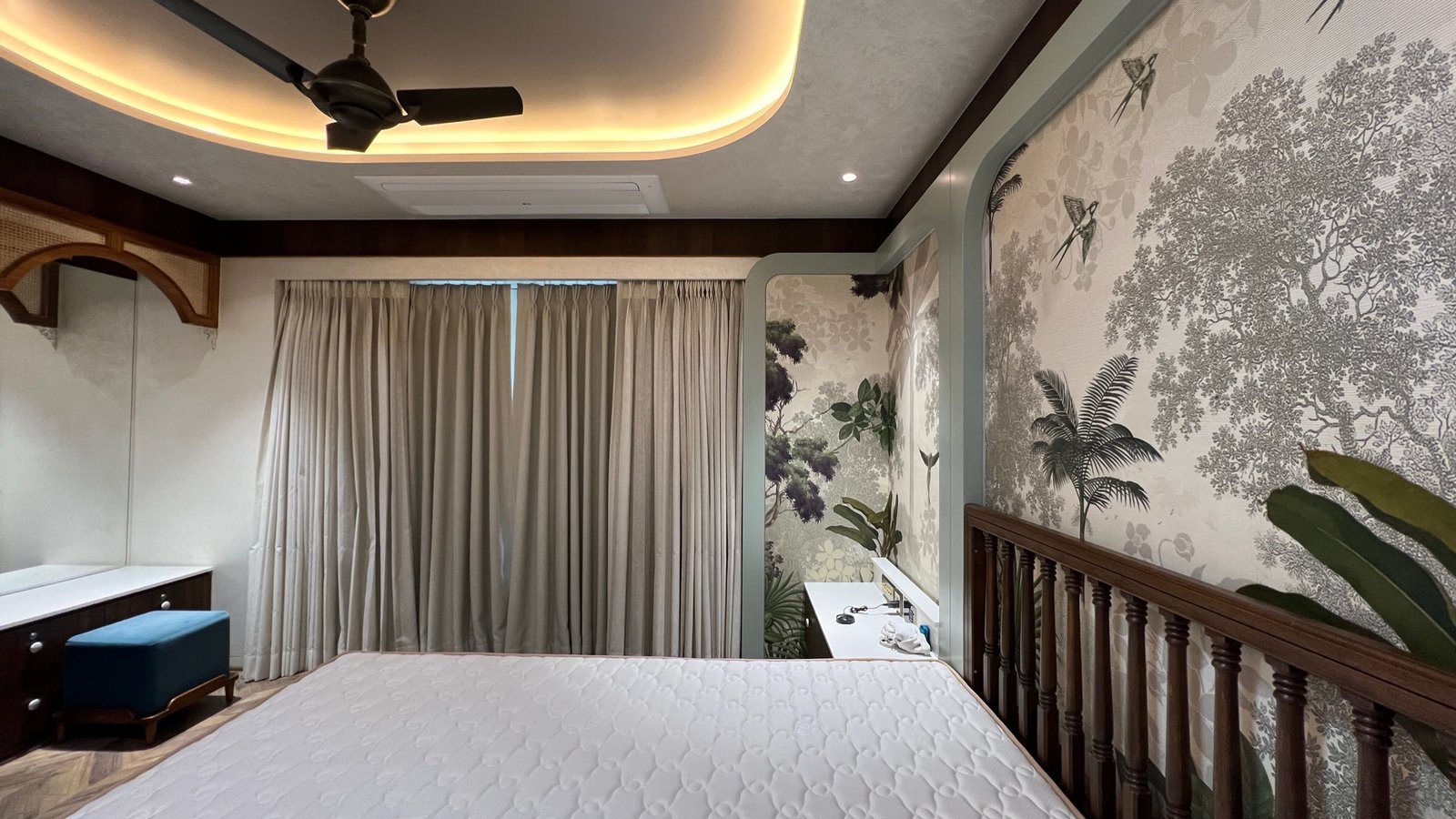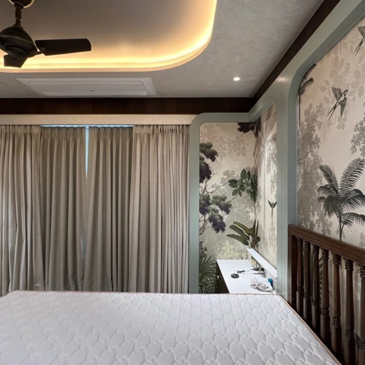 Drawing inspiration from modern Indian sensibilities, this project blends cultural warmth with contemporary refinement. Every aspect of the home’s interior was curated to strike a balance between tradition and modernity. From the selection of rich, textured fabrics and the making and installation of curtains throughout the house to the custom upholstery of seating and headboards, each detail was crafted with precision. The blinds and wallpapers were thoughtfully chosen to complement the color palette and architectural features, creating an elegant visual rhythm across spaces. The overall design captures the spirit of modern India—vibrant, grounded, and sophisticated.